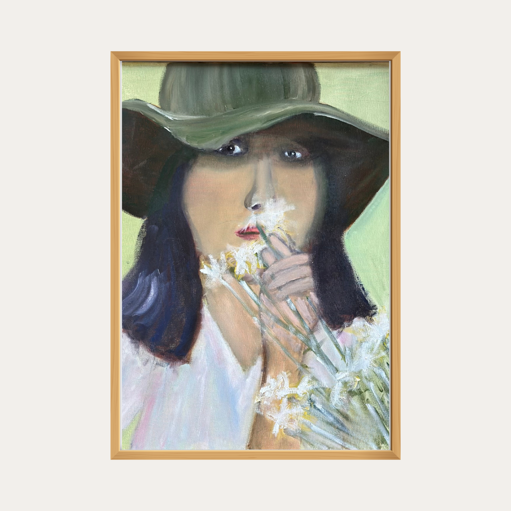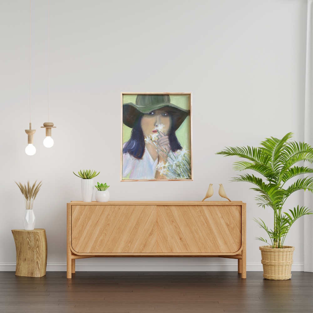 Oil on 16"x 20" Canvas. Natural wood frame.