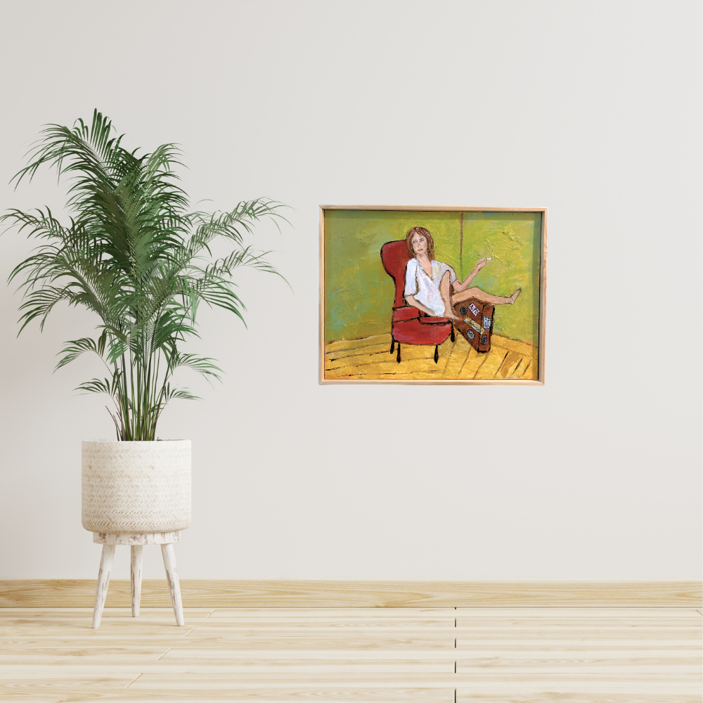 Acrylic on 18" x 15" Canvas. Natural wood frame.